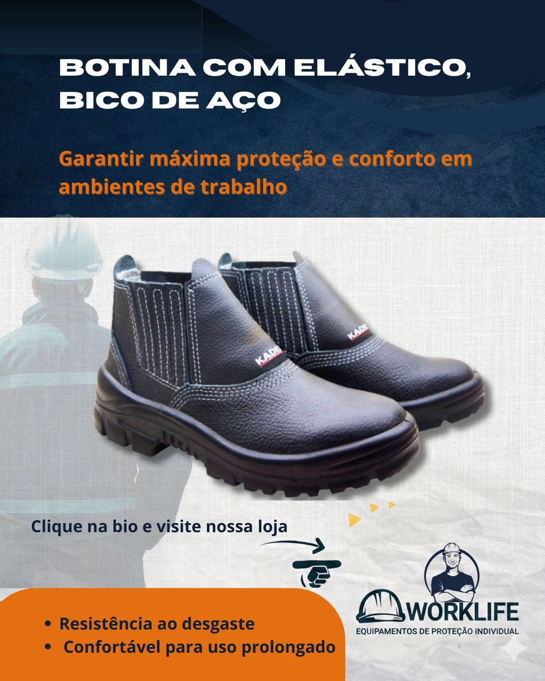 A *Botina de Segurança WorkLife com Elástico e Bico de Aço* foi desenvolvida para oferecer *máxima proteção, conforto e durabilidade* para quem enfrenta rotinas intensas no trabalho.